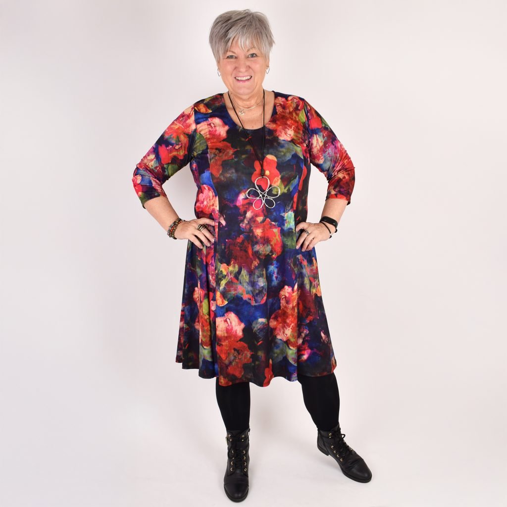 Dress ‘BEATA’ features a flattering princess cut that drapes beautifully. Pair it with comfortable leggings and heels for festive occasions, or with sneakers for everyday wear. The fabric is very stretchy and stretches about 20 cm extra. Marie is wearing size L-XL in the photos.