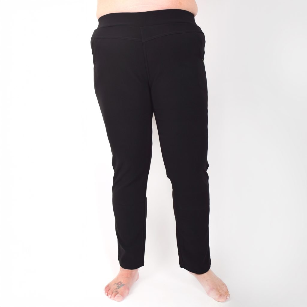 Stretchbyxor ’NINNA’ med detaj på fickorna. Fickor framtill. Bekväm passform, hög midja och superstretchigt material. Raka, lite avsmalnande ben. Stretchar ordentligt, så vill du ha tightare byxor kan du välja en storlek mindre än vanligt. Tvätta innan du tar byxorna i bruk. Maries (169 cm) storlek är XL. Byxornas längd är 110-104 cm och innerbenslängden 68-72cm.