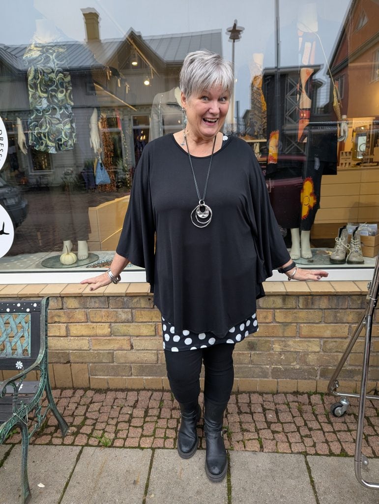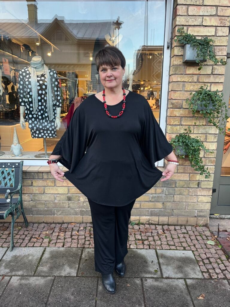 Tunika med trumpetärm ’KAJSA’ . Med sin runga urringning, trumpetärmar och fint, tungt fall är ’KAJSA’ både trendig och bekväm. Kombinera den med dina favoritleggings och lunika eller snygga byxor. Denna tunika finns i fyra storlekar och passar många kroppstyper.